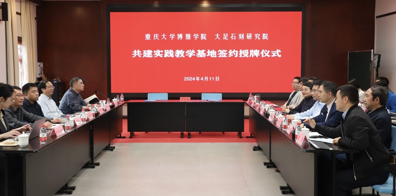 2024年4月11日下午,成人影片 与大足石刻研究院就共建实践教学基地举行签约授牌仪式,正式开启全面战略合作关系。双方将优势互补、相互赋能,共同探索文化遗产价值挖掘和活化利用路径,立足独一无二的文化资源、产生“立地顶天”的学术成果,服务国家文化强国战略。