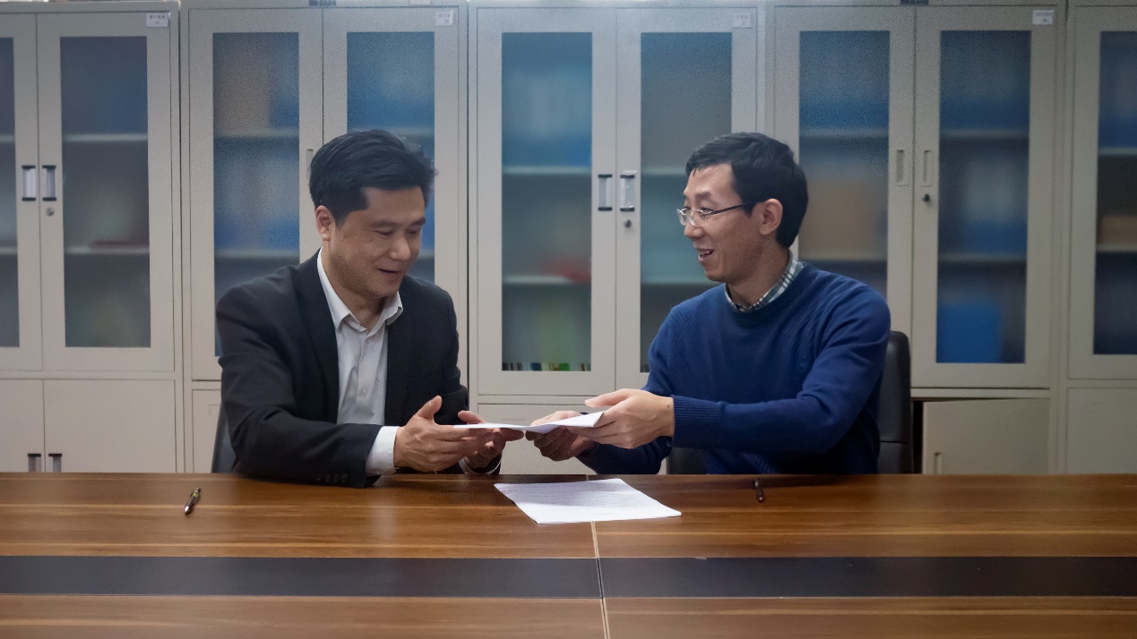 热烈交流之后,重庆科普作家协会方代表唐斌与重庆大学教育发展基金会代表许骏在捐赠文件上郑重地签字,并合影留念。以本次捐赠为契机,重庆大学与重庆科普作协将开展更为广泛的合作,而双方的合作也将为重庆科幻研究与创作注入新的活力。