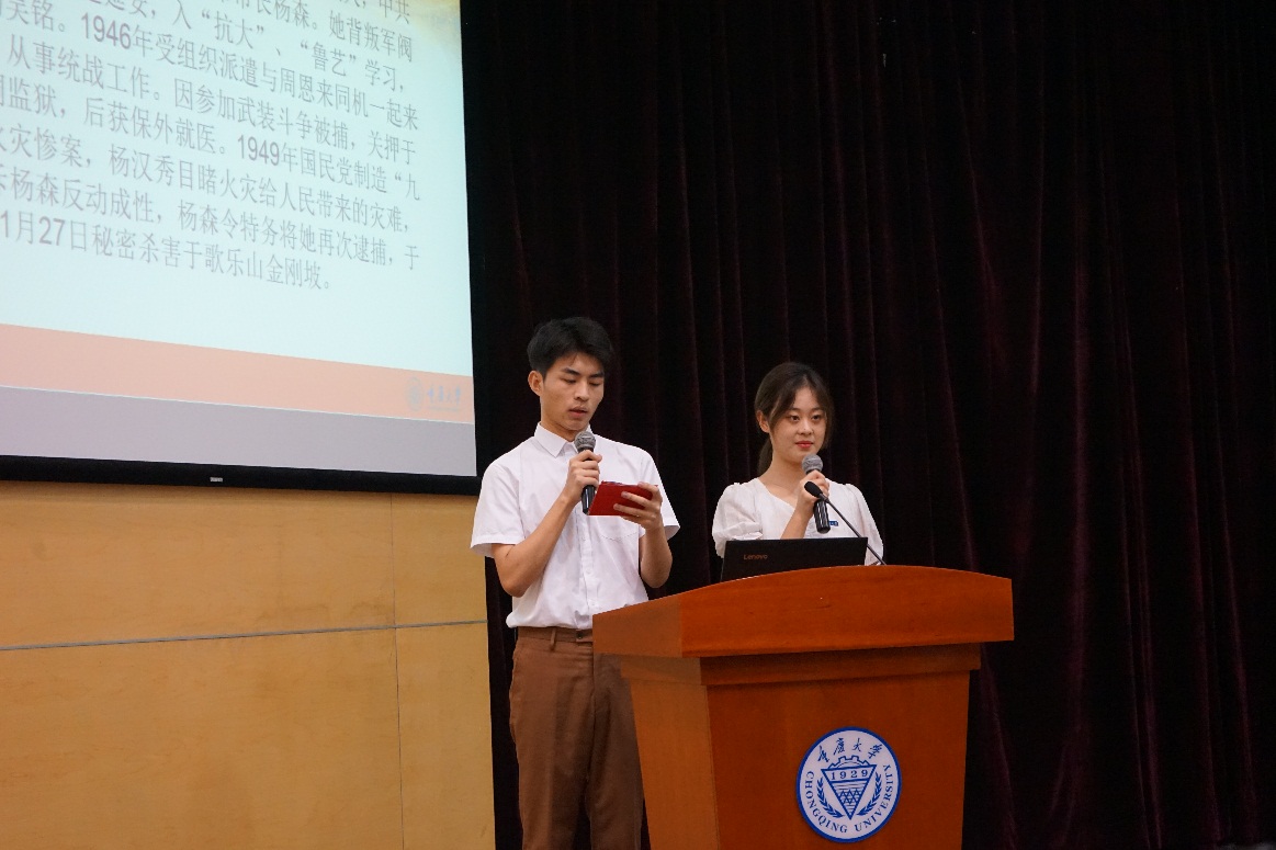 党委副书记胡佳主持,重庆大学党委宣传部校史办公室主任王琰、美视电影学院播音主持系副主任张晓玲、高研院研究生辅导员郑家勤以及学院学生参加了本次活动。