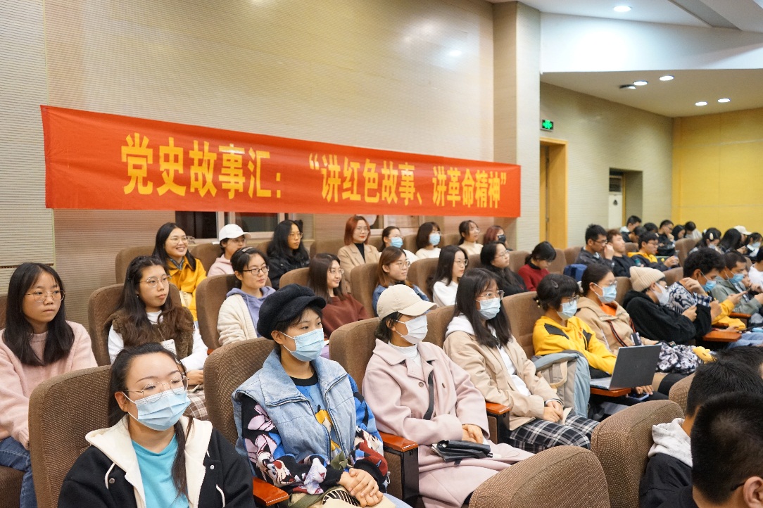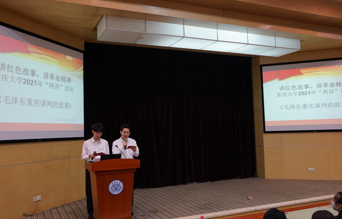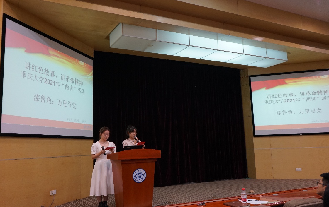 来自美视电影学院的八位巡讲员两人一组,轮番登台。分别从《毛泽东重庆谈判的故事》《漆鲁鱼:万里寻党》《杨汉秀:卓节流芳播海瀛》和《刘伯承——意志如钢的军神》四个主题出发,讲述革命先辈令人动容的红色故事。伴随着庄严的配乐,巡讲员们语调时而激昂,时而低沉,将故事娓娓道来,用语言还原历史场景,展现人物革命精神。在历史转折关头,毛泽东为了国家的前途和人民的利益,置个人安危于不顾,深入虎穴,以身犯险,体现了革命领袖始终牢记为人民谋幸福、为民族谋复兴的初心使命。漆鲁鱼不畏艰辛,万里寻党,他曾说:“不要坐等党组织来找自己,只有自己行动起来,才能回到党的怀抱。”杨汉秀为了党和人民的事业,舍弃了安逸的生活,牺牲了自己的一切,直至献出了生命,“归来遭遇鸱枭辈,卓节流芳播海瀛”是对其高尚人格的书写。刘伯承意志如钢铁一般,手术拒绝麻醉,72刀见证“军神”的诞生……他们的事迹令人钦佩,其精神感染着在场的每一位师生。