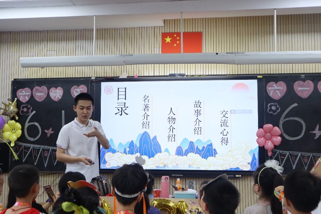 46名学生分别前往各年级各班级开展《西游记》《水浒传》导读和阅读经验分享。他们以《西游记》《水浒传》中鲜活的人物形象和生动的人物故事为引,以不同的视角解析成书的背景,分析关于书籍所处朝代的历史文化,探讨关于《水浒传》《西游记》中的未解之谜。通过互动探讨激发同学们的好奇心、想象力和探求欲,鼓励学生保持阅读经典的习惯,在阅读中成长为具有宽广眼界和承担文化传播使命的新时代少年。