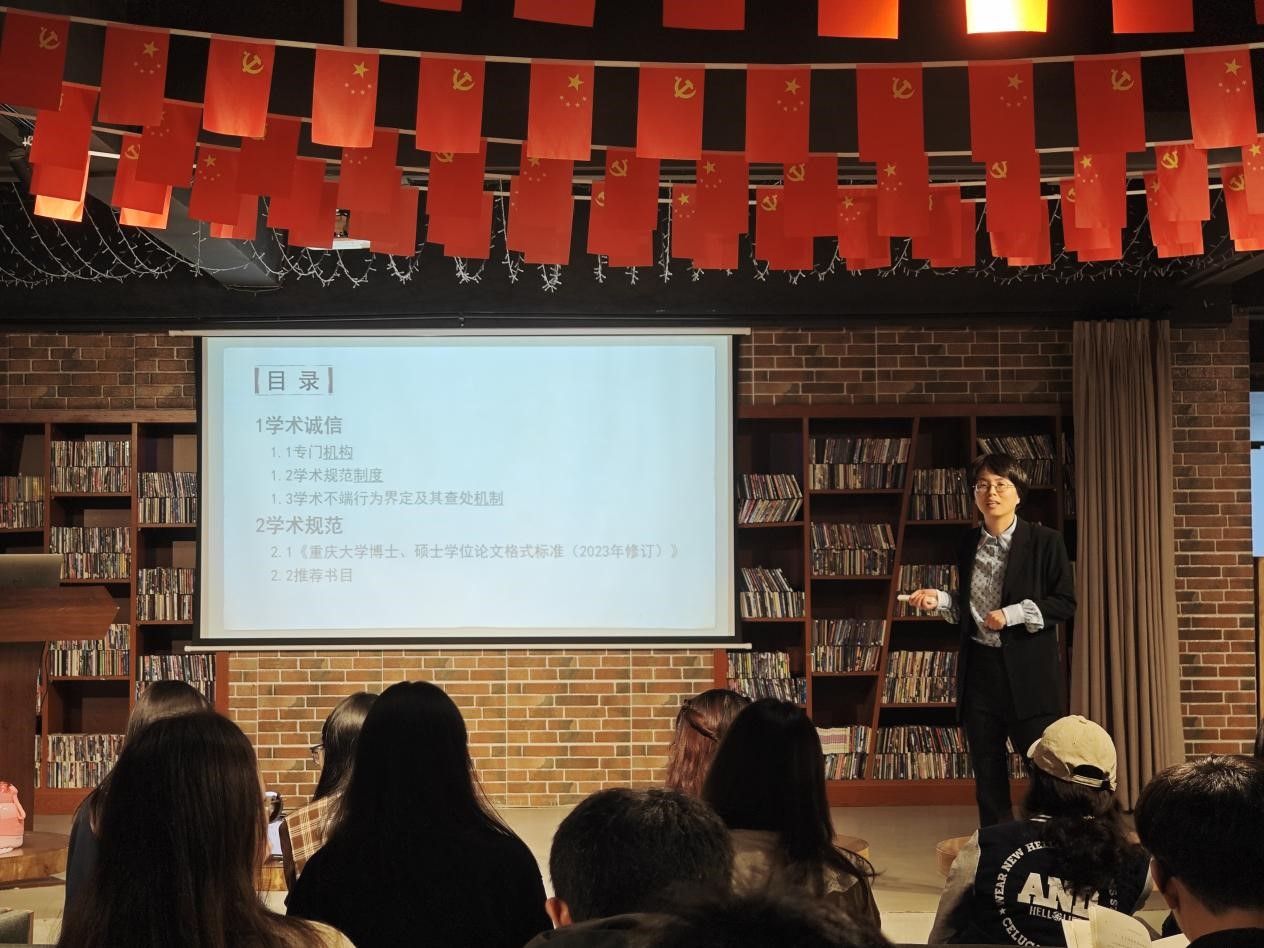 守学术规范,夯诚信基石。为帮助新入学的同学们熟悉和掌握学术论文写作中的科学道德准则与具体要求规范,从而强化科研诚信建设、建设务实严谨学风,2023102616:30,高研院2023级研究生新生学术诚信与学术规范讲座于A区声音图书馆内顺利举行。本次讲座由中文系袁敏副教授作专题报告,2023级全体新生到场参与。