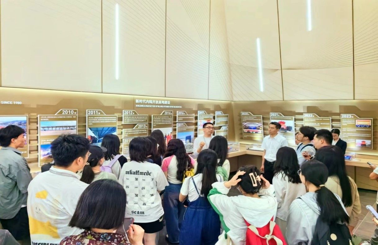 重庆国际物流枢纽园区是中欧班列始发地与西部陆海新通道策源地,“一带一路”倡议、长江经济带、新时代西部大开发、成渝地区双城经济圈等多项顶层规划在此交汇。作为全国五大中欧班列集结中心之一,该园区荣获首批“全国示范物流园区”称号,全面融入共建“一带一路”、加快建设内陆开放高地的发展大局,积极参与西部陆海新通道共商共建共享,展现出开放的国际视野与宏伟的远大目标,也为重庆大学师生提供了良好的实践基地与学习平台。