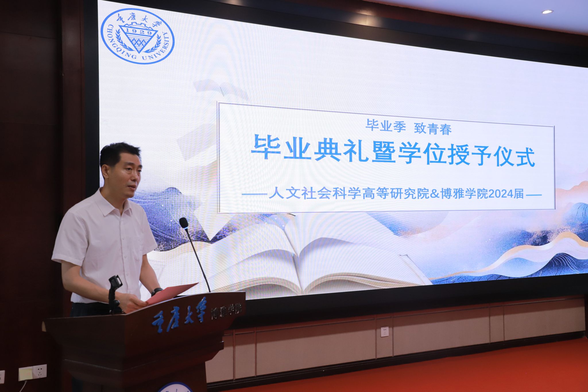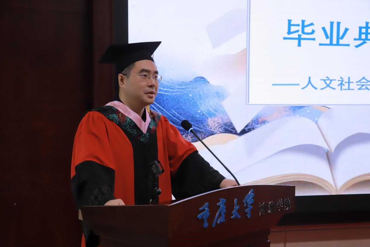 典礼在全体起立奏唱国歌中拉开帷幕。李广益院长首先致辞,向即将步入社会的毕业生们传达了学院的期许与勉励,他祝愿每一位博雅及高研院的学子都能够在快速变化的时代洪流中,不仅在专业领域内深耕细作,更能够不忘初心,常怀感恩之心,具备宽广的视野和深刻的人文关怀,成为社会的栋梁之才。