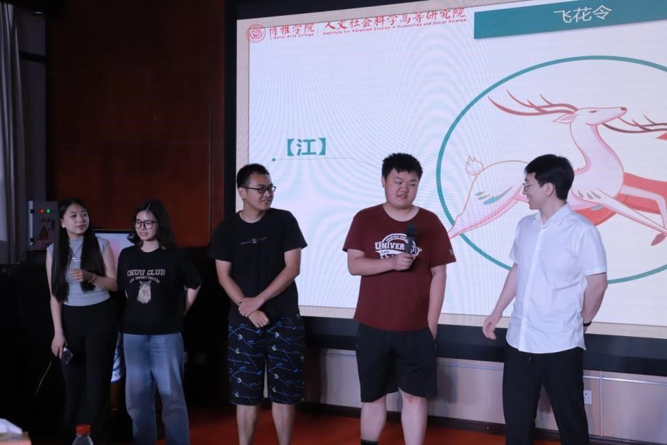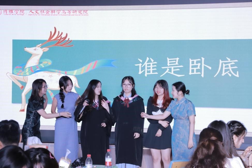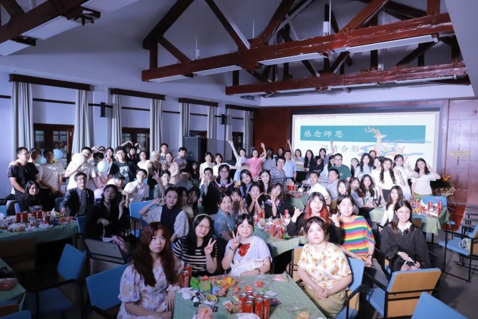 本科生班主任斯维向大家送上毕业寄语,在飞逝的时间面前,他祝愿大家“对未知的紧迫的明天保持热爱,保持感恩”,用心摸索热衷的事业,永远向往真理和自由,彻底地体验属于自己的时间并永远保持一颗年少的心。聆听过老师的教诲和祝语,同学们在主持人的引导下参与了“飞花令”和“谁是卧底”两个趣味小游戏。即使游戏结束,大家依旧热情未减,纷纷在交流中向老师同学们表达着感激与不舍。随着清脆的快门声,全体人员的笑容和记忆被一起定格,瞬间由此变成永恒。