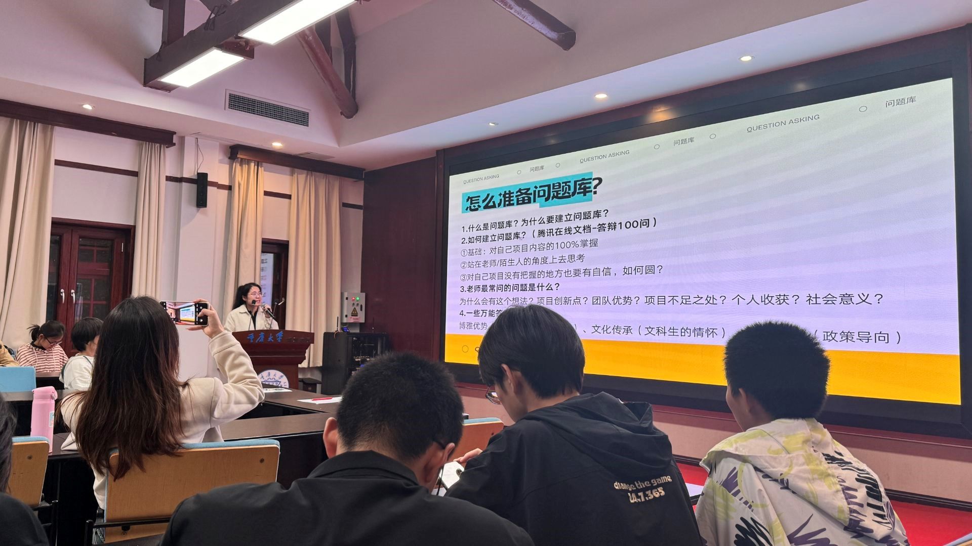 2021级本科生于文鑫介绍了大学生创新项目的准备工作,包括策划书的撰写、分工等关键细节,又从如何准备数据库、美化整合项目书等方面,结合自己的真实经历,为同学们讲解了项目书的具体内容。