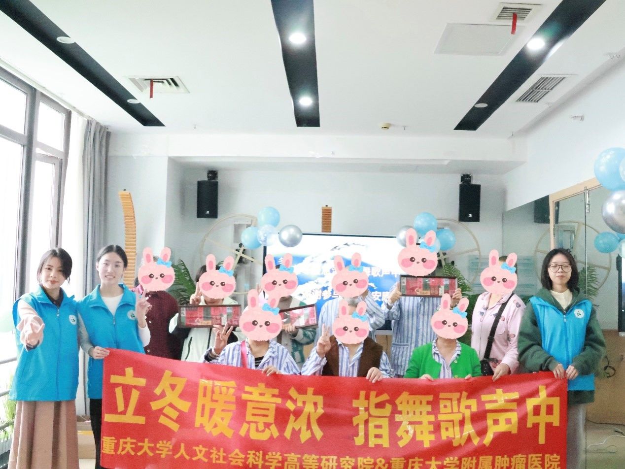 爱心社联合重庆大学附属肿瘤医院乳腺肿瘤中心,特别组织了“立冬暖意浓,指舞歌声中”立冬主题活动,为乳腺肿瘤中心的病患们送去关怀与祝福,帮助他们更好地缓解心理压力,促进身心健康。