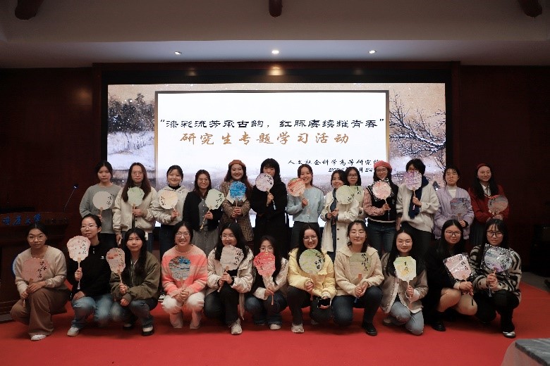 于博雅书院报告厅举办了“漆彩流芳承古韵,红脉赓续耀青春”研究生专题学习活动。本次活动包括理论学习、知识竞答与漆扇制作三个环节。