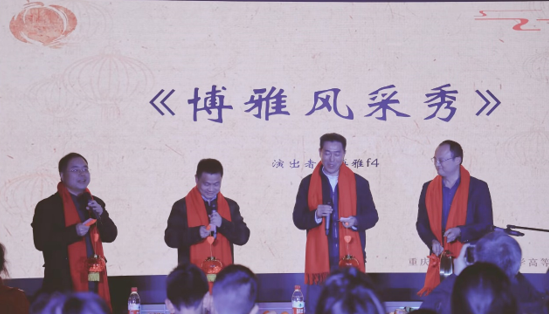 经过学院学生会精心布置,大小的灯笼错落挂起,对联与窗花在彩灯的照耀下熠熠生辉,博雅书院充满浓浓的新年味道。下午四时,师生迎新游园活动在欢声笑语中准时开幕,本次活动分为节目表演与游戏两个环节。在李常悦、覃芳、饶芮端、樊家菊四位同学带来欢快的开场歌曲《穷开心》点燃现场气氛后,党委书记孙江林对游园活动进行了致辞,主持人黄义鑫、李常悦宣布迎新游园活动正式开始。