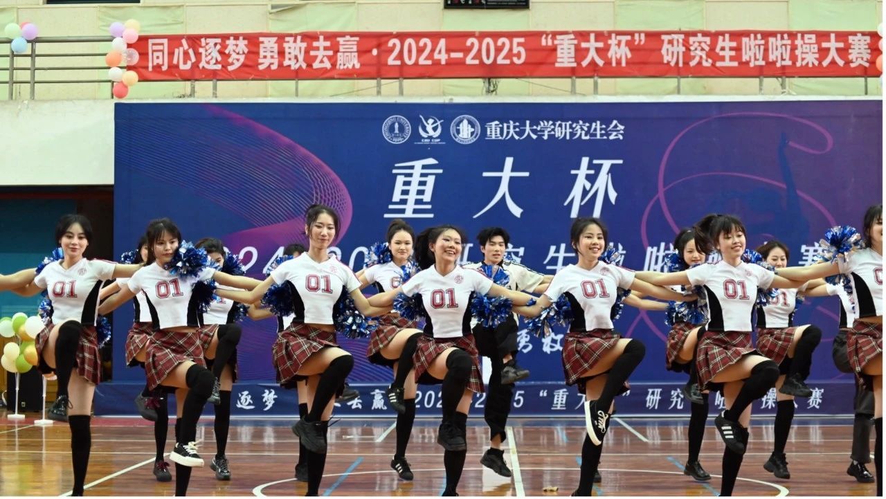 为深入贯彻落实党的二十大报告中"加快建设体育强国"的重要精神,营造健康向上、朝气蓬勃的校园体育文化氛围,2025年4月26日15时,“重大杯”2024-2025学年研究生啦啦操大赛在重庆大学A区室内篮球馆隆重举行。