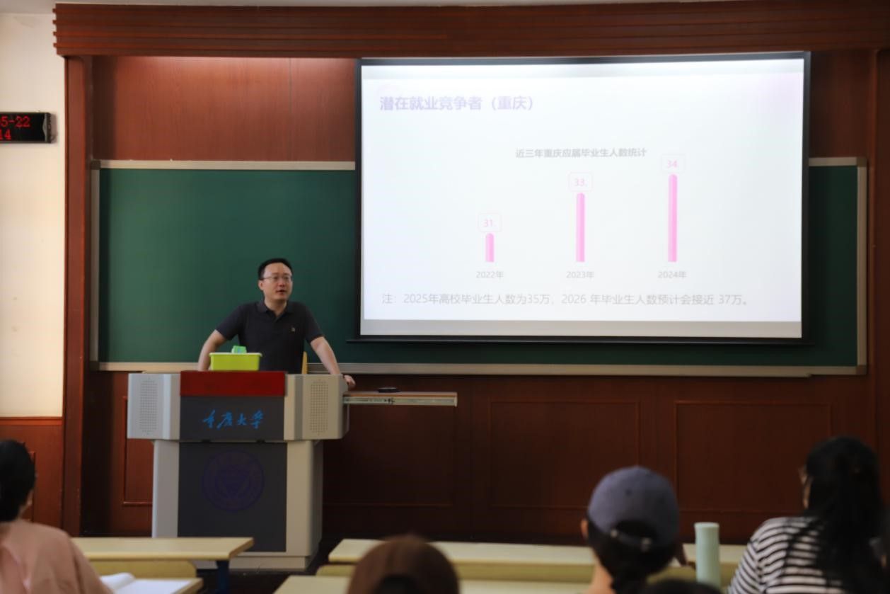 针对研究生,学院举办“文史哲硕士公考规划与备考策略”专题讲座。中公教育任老师结合重庆市公考最新政策与考情变化,系统分析报考优势与竞争态势,在激发考生热情的同时,重点讲解了备考方法、复习规划及应试技巧,帮助学生厘清备考思路,制定科学复习方案。