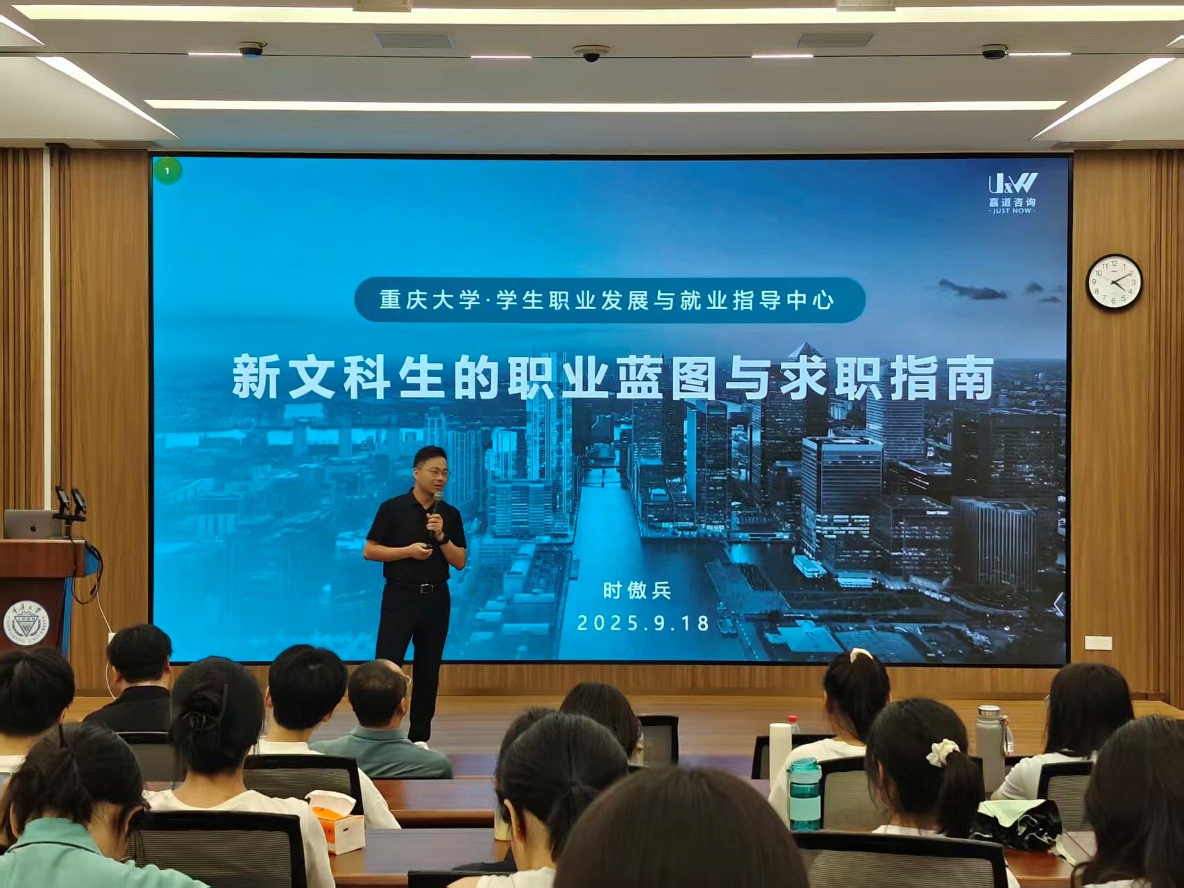 2025年9月18日下午,应重庆大学邀请,上海市就业服务专家、中国汽车人才研究会理事、重庆大学就业育人导师时傲兵在A区经管学院楼A101教室作题为“新文科的职业蓝图与求职指南”的专题分享。会议由成人影片
