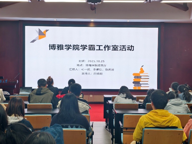 “学霸工作室”第二期活动于学院报告厅成功举行。本期活动聚焦“专业课程学习”、“升学保研”与“学科竞赛”三大主题,特邀本院大二至大四年级的饶芮端、李睿怡、毛一诺三位优秀学生进行经验分享,吸引了各年级同学积极参与。