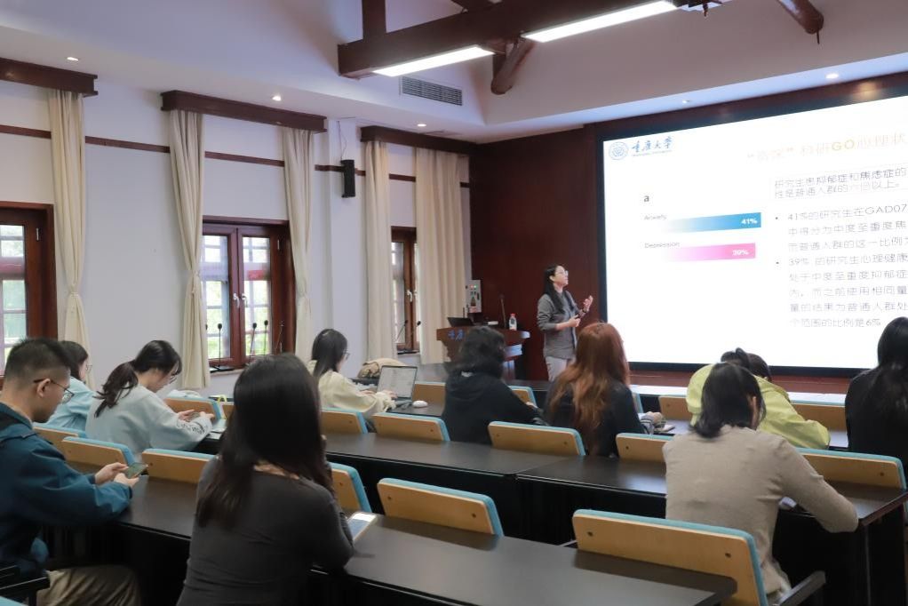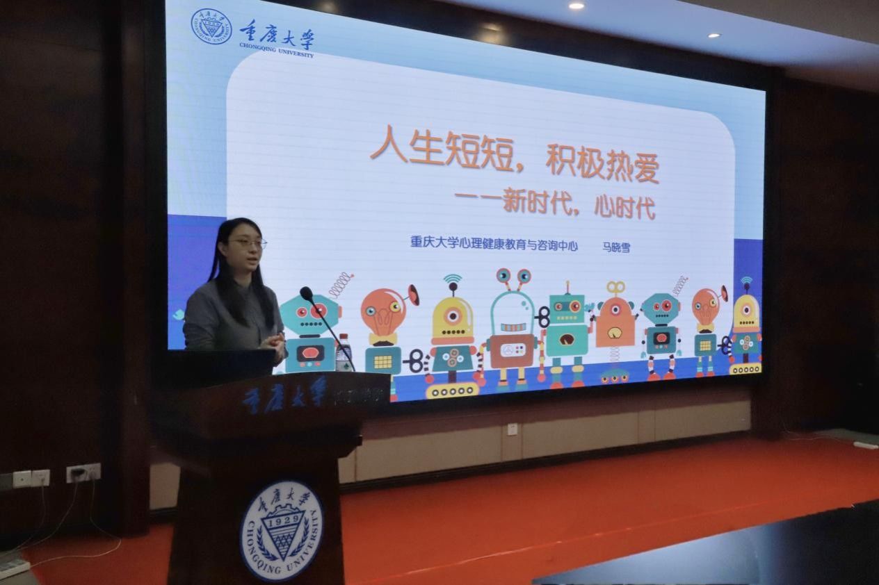 报告厅开展了研究生心理健康教育讲座。本次讲座特邀重庆大学心理健康教育与咨询中心马晓雪老师主讲,以《“人生短短,积极热爱”——新时代,心时代》为主题,带领全体新生开启了一场“问心之旅”,为初入研途的学子们送上了一份温暖的心理关怀。