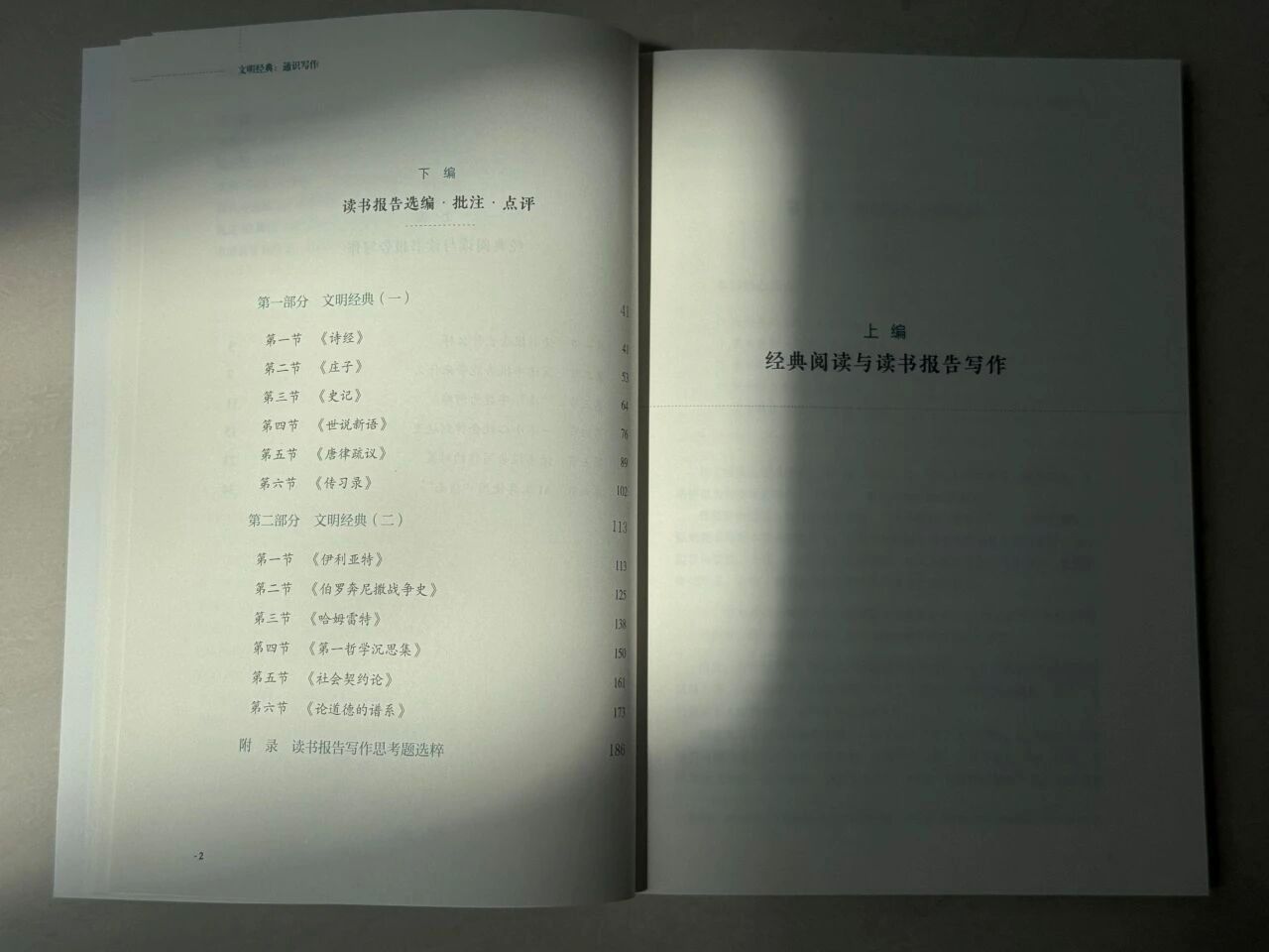 重庆大学“文明经典”作为全体学生修习的通识核心课程,自2021年开课伊始,即设置了读书报告写作这一环节,要求学生在阅读经典文本之后,根据教师布置的思考题写作读书报告并参加研讨班。这一环节设计的初衷是希望通过写作来检查、督促和引导学生的阅读与理解,因为写作和研讨是经典阅读教学模式的内在构成环节。在数年的课程运行期间,学生提交了几十万篇读书报告,且在2022年和2024年两次大规模问卷调查中,超过一半的学生认为写作能力得到了大幅提升。这使得我们深刻认识到,读书报告的写作既是这一课程本身的教学方法,也正好契合了当下大学生写作能力训练的迫切需求,需要在理论上作出进一步的梳理总结,以廓清共识并形成专门的教学指导用书。