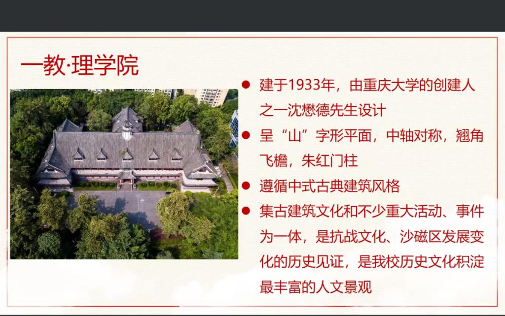 研究生二支部于2022年3月17日下午以线上会议的形式开展“红岩先锋”党支部建设系列之“赏校园红色建筑、传红色精神”支部活动。宋楚峻担任活动主讲人,支部35名党员参加本次党日活动。