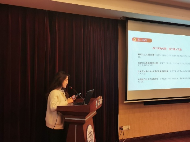 吴雨倩带领大家回顾了历届中央全会的主要内容,重点介绍了十九届六中全会的主要议程和会议内容。李依晓对十九届六中全会的会议精神进行了详细解读。陈曦对《中共中央关于党的百年奋斗重大成就和历史经验的决议》进行了内容解读和意义阐释。