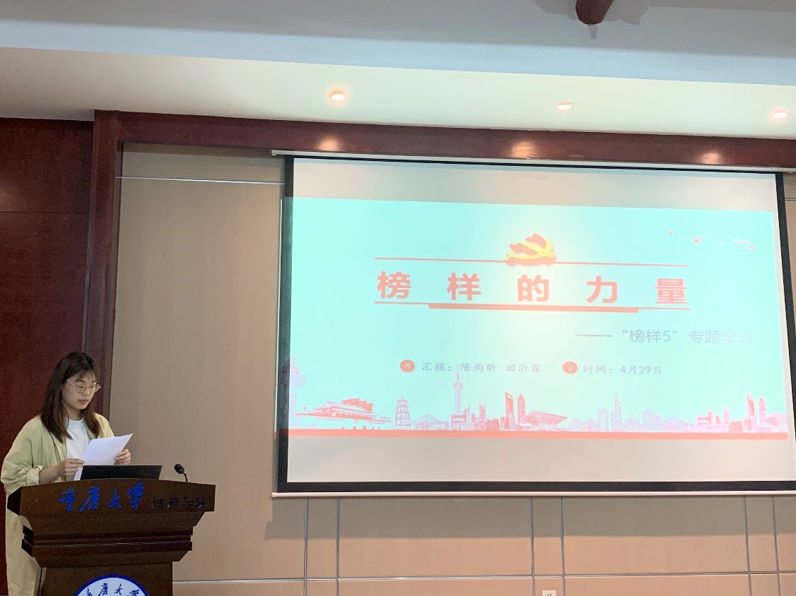 接下来支部积极分子进行了主题分享。陈雨昕、田沂霖同学分享了央视专题节目《榜样5》中的优秀共产党员,有主动请缨、奔赴一线与死神抗争的医生张西京,也有立足本职岗位,坚守社区一线的基层干部杜云,还有达瓦仓决、张宏等,他们在这场没有硝烟的“战役”中,用实际行动展现了共产党员的责任与担当,为抗击疫情做出了不可磨灭的贡献,诠释了生命至上、举国同心、舍生忘死、尊重科学、命运与共的伟大抗疫精神。