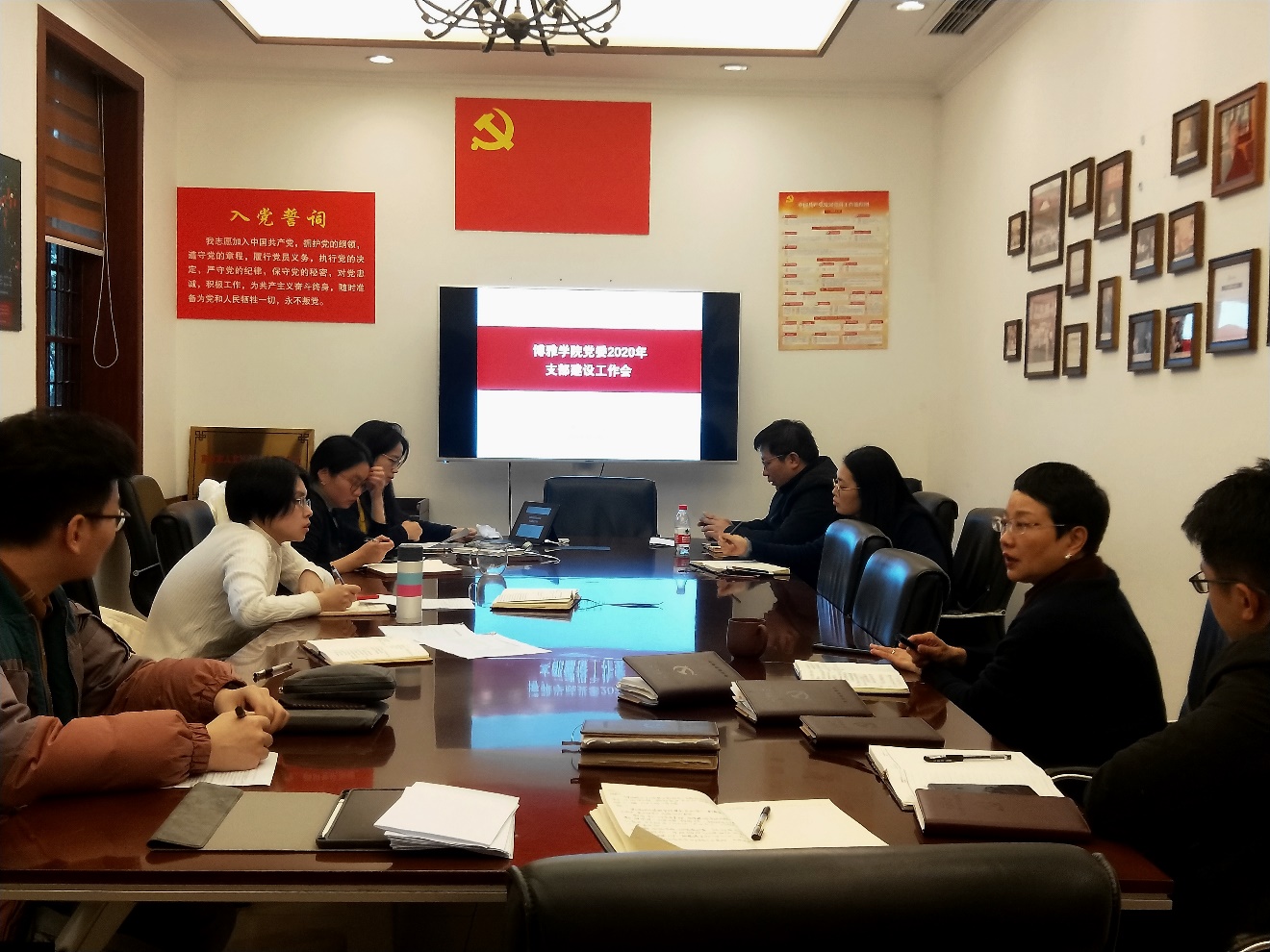 党委于2020年12月15日上午11点在文字斋小会议室召开了支部建设工作会。学院党委书记曾佐伶、副书记胡佳、党委委员、组织员及各支部书记参加了此次会议。