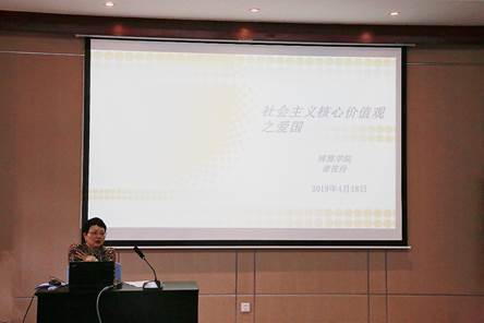 随后,曾佐伶书记为入党积极分子做“社会主义核心价值观”主题报告。为了让同学们更深刻的理解“什么是爱国、今天我们如何爱国”,曾佐伶书记讲道理,摆事实,通过分享正确的观点、典型的事例、生动的个人经历和感悟,为同学们进行了一场情理并茂的党课教育。曾佐伶书记从作为社会主义核心价值观的爱国的内涵解说引入主题,分享了两则洋溢着爱国精神的故事,还以自己丰富的切身经历分享了对于祖国的感情和理解:“中国能够走到今天,经历了翻天覆地的变化。站在自己的土地上这种踏实感是不一样的。”