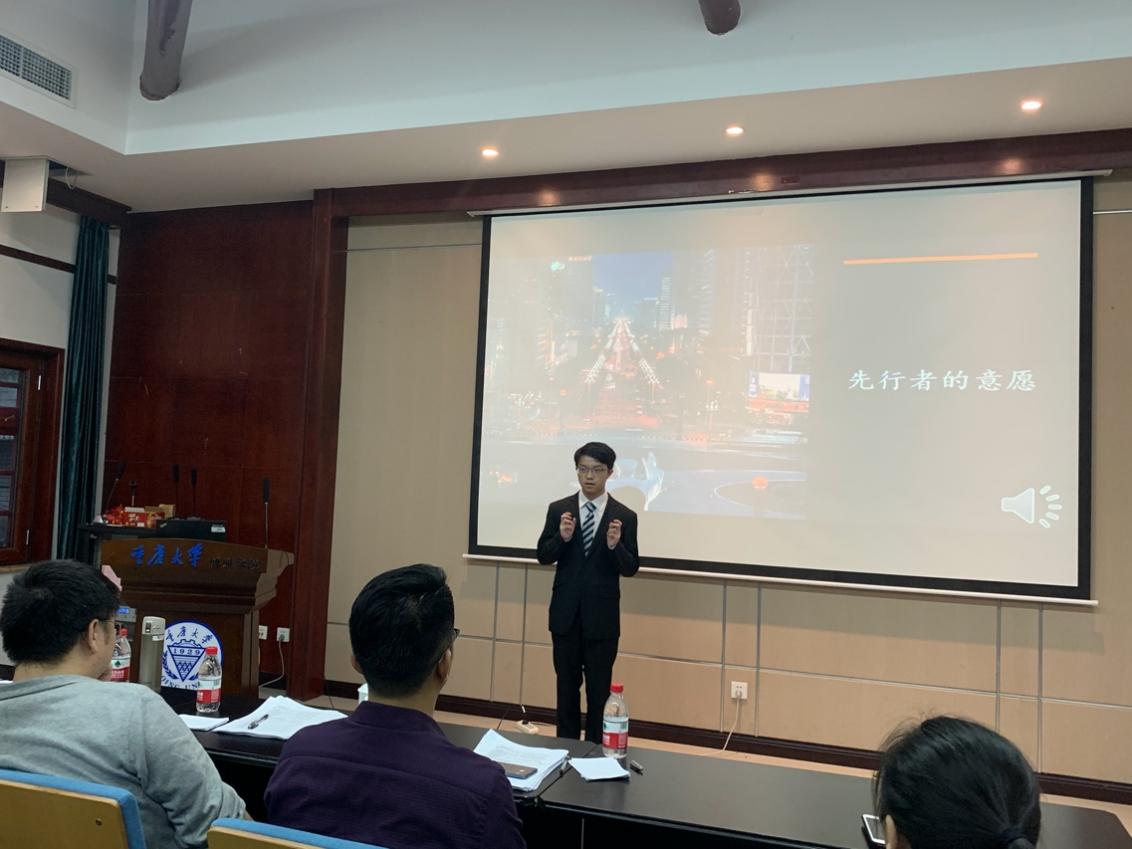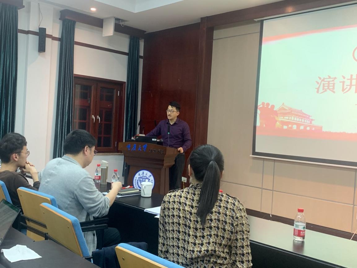 演讲比赛结束后,胡佳对本次活动进行了总结。他代表学院表示了对这次活动的高度重视,并强调了学党史对当代青年人的重要意义,他还借用重庆大学校歌中的歌词:“复兴民族兮,誓做前锋”表达对同学们的殷切期望。