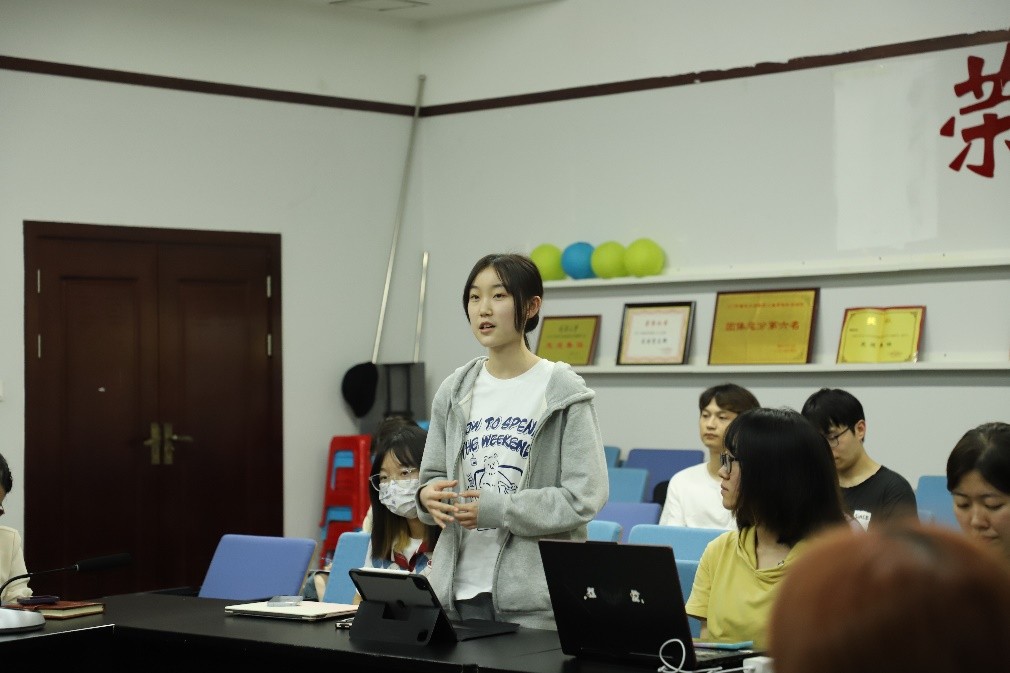 为将调查研究中的经验与新文科建设相结合,提高将调查研究成果转化为具体工作举措的能力。汇报人王玥结合东升村的田野调查经历,分享了自己的学习心得。王玥文指出调查是党的谋事之基、成事之道,是获得真理的源头活水,应当知行合一,落实文件精神,并且与人文社科相结合,做好人文社科研究。