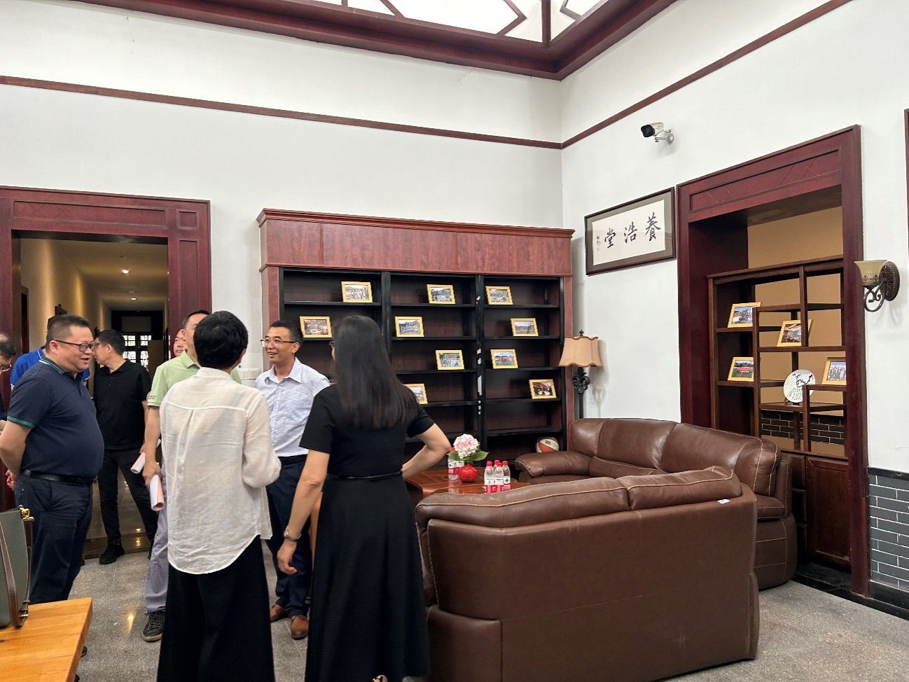 此次职工小家验收考评工作主要分为实地考察、听取汇报、综合评估三个部分。在职工小家验收考评工作组到达博雅小院后,曾佐伶书记率同接待人员带领工作组参观了博雅小院,并向工作组详细介绍了博雅小院的建筑特点、功能分区等。其间,工作组在我院职工小家主场地“养浩堂”停留,考评专家对“养浩堂”进行了仔细的考察,曾佐伶书记也向工作组介绍了“养浩堂”命名的缘起、装饰布置的思路等。
