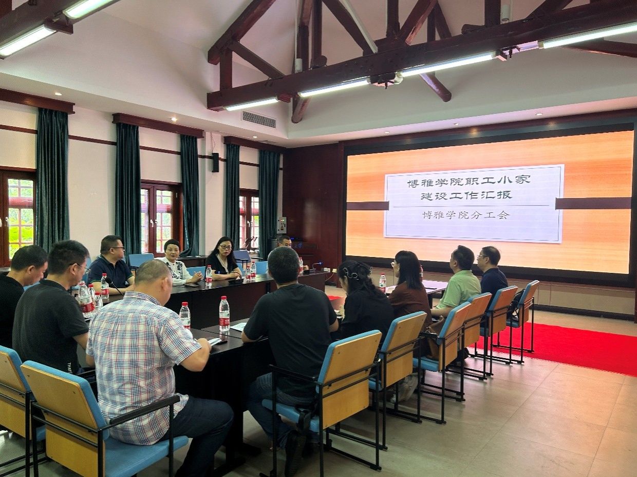 现场考察结束后,验收考评工作组来到博雅小院报告厅,听取我院职工小家建设工作汇报,汇报由张军主席主持。在曾佐伶书记介绍完我院基本情况后,郭畑代表学院分工会就职工小家建设工作向工作组进行了汇报。郭畑汇报了我院职工小家的建设历程、建家理念、工会工作制度、具体工作方针等,并就我院的工会工作经验和面临的挑战进行了总结。随后,工作组与我院进行了热烈而深入的交流,对我院的工会工作和职工小家建设提出了诸多宝贵的意见。最后,张军主席对我院的工会工作成绩和建设职工小家的积极工作态度表示了肯定,并要求我院分工会在学院党委的领导和支持下,不断总结经验,创新工作方式,提升小家特色。