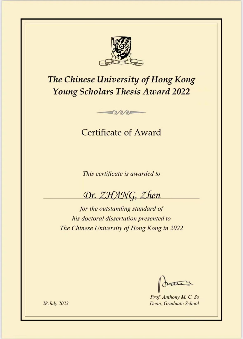 喜报 | 我院中文系张振老师荣获“香港中文大学青年学者论文奖”