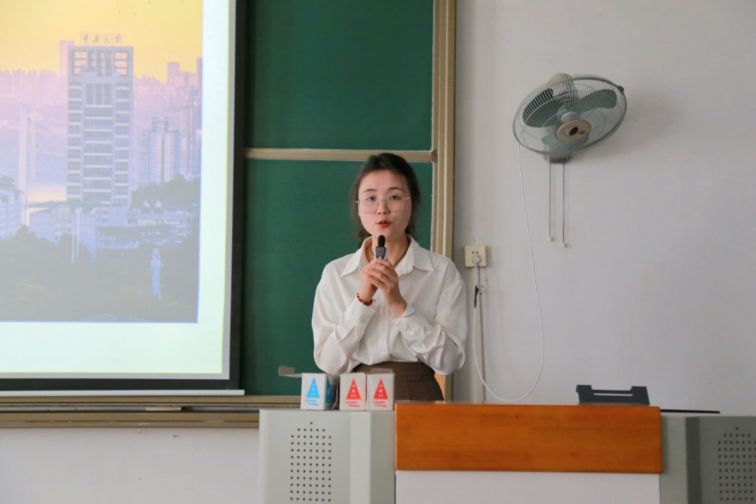 “文明经典”是重庆大学的通识核心课程,覆盖全体大一学生。课程以“文明以止、立德树人”为理念,选取中西方经典中《诗经》《史记》《荷马史诗》《伯罗奔尼撒战争史》等十余部文本,引导学生在经典阅读中深刻理解中西方文明传统,培养学生的家国情怀和全球视野。其中,助理讲师团队是保障文明经典课程运行的重要支撑之一,每学期重庆大学都有200多名研究生走上助理讲师这一岗位。熊琳同学作为助理讲师代表在会上发言。